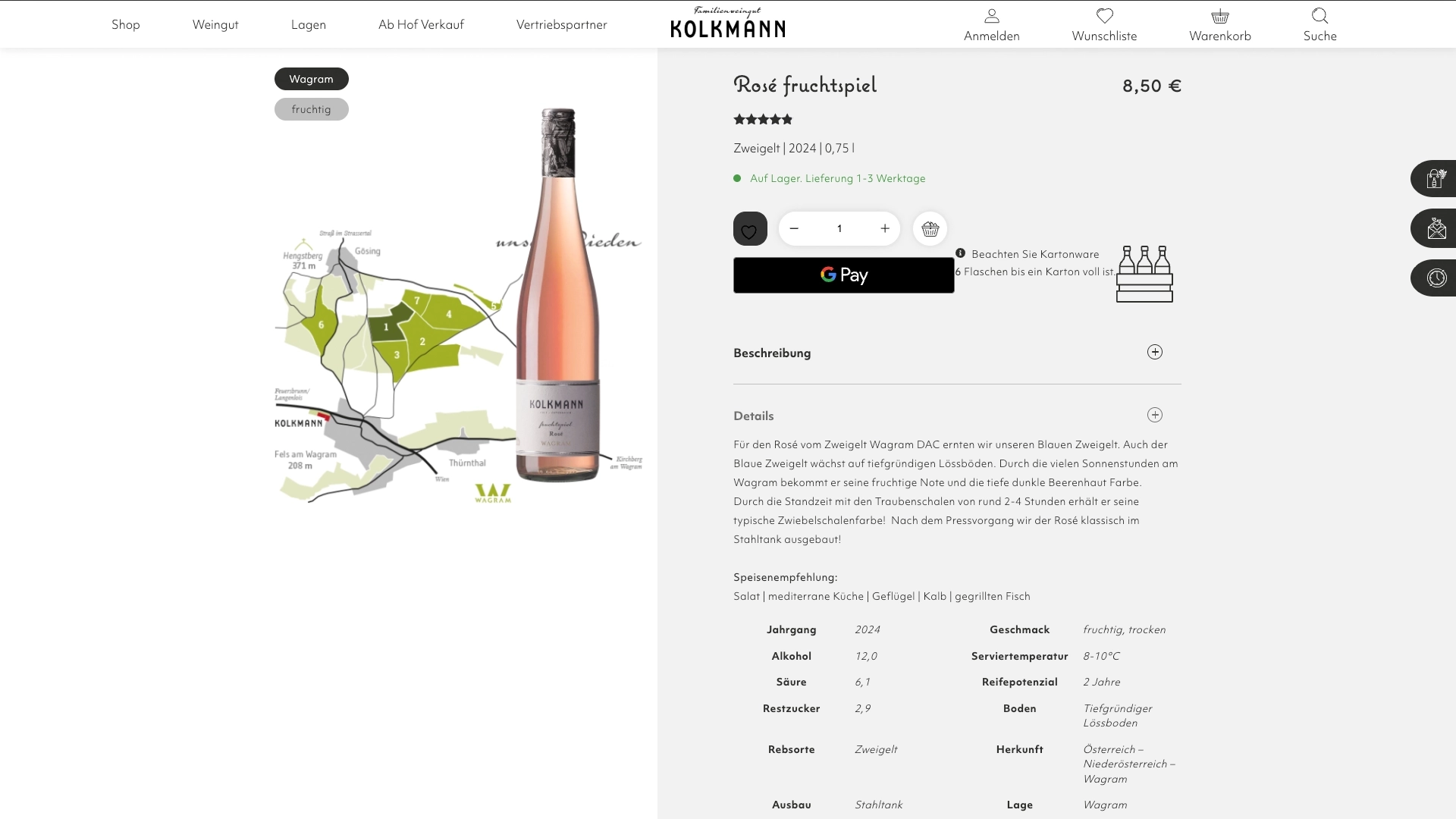 - Klare Navigation zwischen Shop, Storytelling und Weinempfehlungen