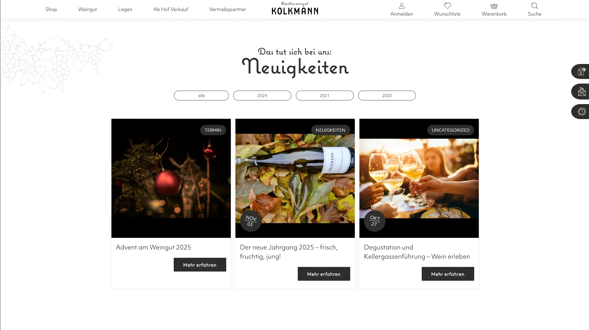 Kolkmann ist ein traditionsreicher österreichischer Weinhändler, bekannt für erlesene Weine, Spirituosen und Feinkost. Mit dem neuen Webprojekt kolkmann.at sollte die Marke digital erlebbar gemacht werden: modern, emotional und gleichzeitig funktional. Ziel war es, Weine, Angebote und Geschichten interaktiv zu präsentieren und einen leistungsstarken Online-Shop zu integrieren, der das Einkaufserlebnis online auf ein Premium-Level hebt.