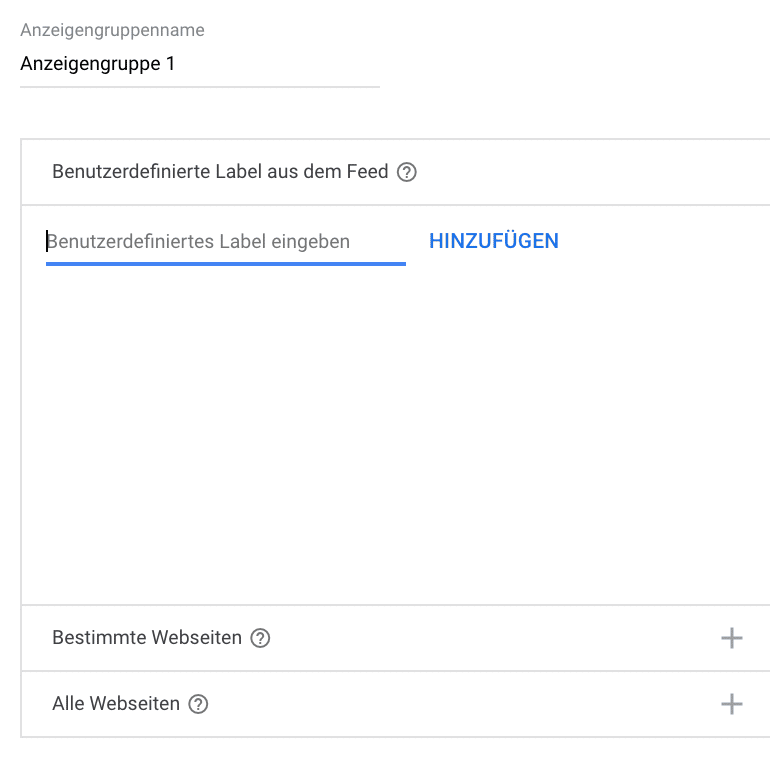 Angenommen es existiert bereits eine Liste mit sämtlichen Produktdetailseiten, die via DSA beworben werden sollen. Man könnte nun alle diese URLs mit einem einzigen Label versehen (z. B. “Produktdetails”). In der Anzeigengruppe selbst wählt man das Label aus und somit stehen alle Produktdetailseiten zur Verfügung.