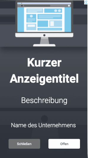 Klassische Bildanzeigen werden ausschließlich vom Werbetreibenden gestaltet und sind daher in der Darstellung selbst nicht durch Google beeinflusst. Der Nachteil besteht jedoch darin, dass im GDN verschiedene Anzeigenformate eingesetzt werden, die auf das jeweilige Placement (Website oder App) angepasst wurden. Dadurch ist es erforderlich, mehrere Anzeigenformate zu generieren, die auf alle diese Plätze zugeschnitten wurden.
