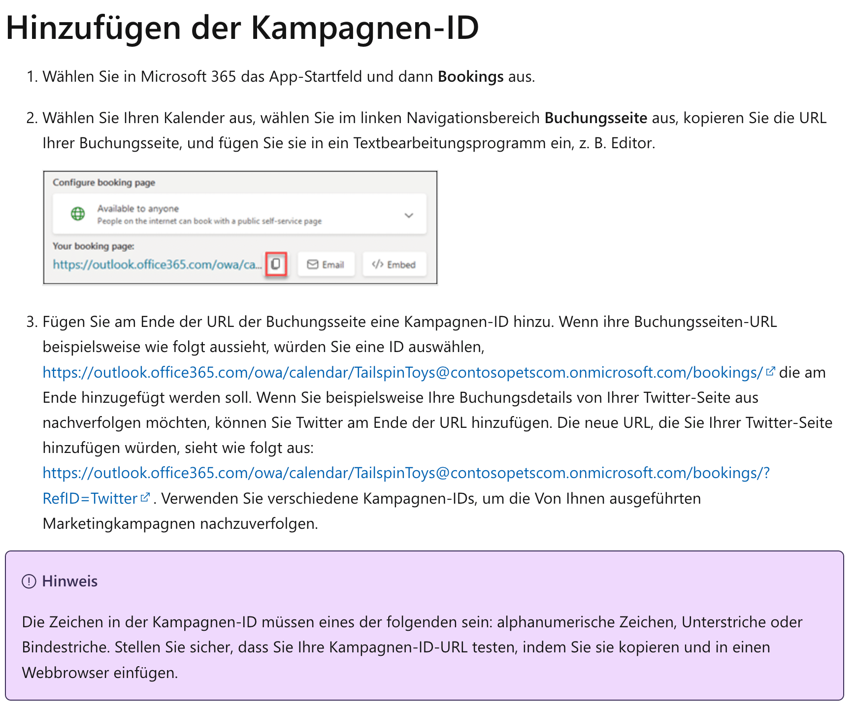Unser Ansatz besteht darin, beim Klick auf einen Microsoft-Bookings-Link einen zusätzlichen Parameter RefId an die URL anzuhängen. Dieser enthält zwei entscheidende IDs für das Conversion Tracking:
