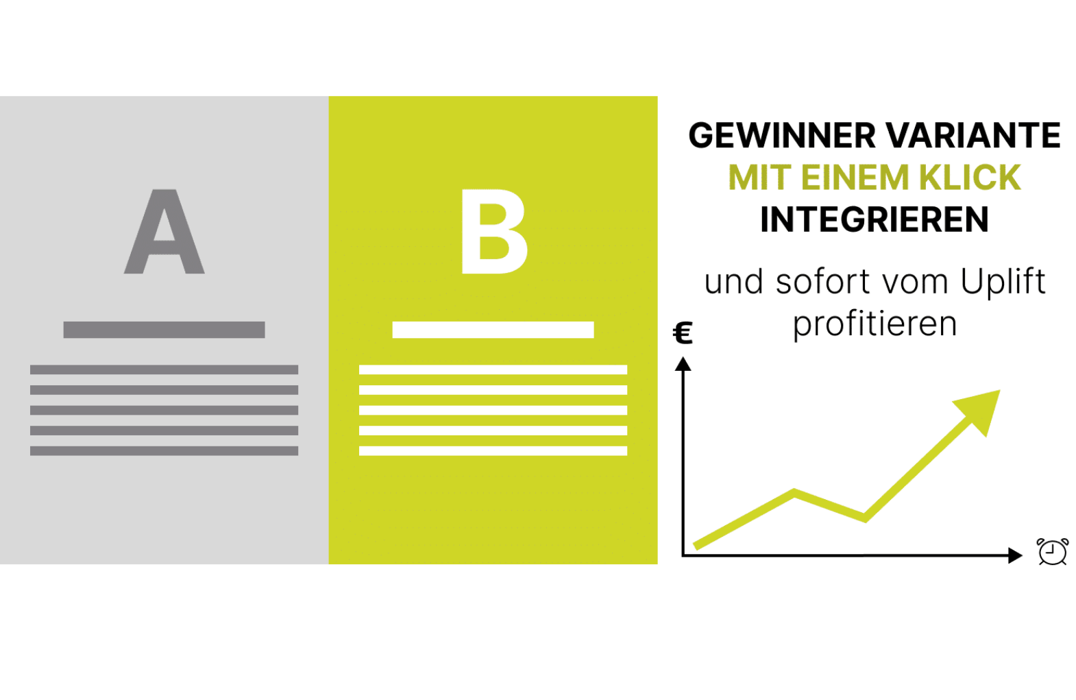 Mit dem A/B-Test-Tool können wir die Gewinner-Variante umgehend ausrollen, damit du sofort von dem Uplift profitierst.