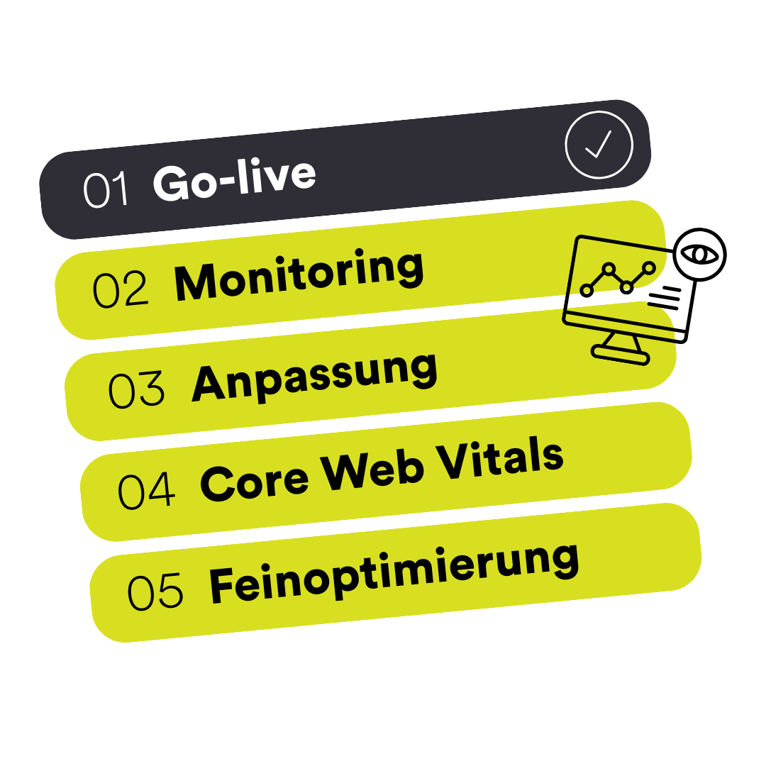Durch die aktive Zusammenarbeit von Anfang an können wir bereits eine langfristige SEO-Strategie erarbeiten und den Großteil dieser Strategie schon vor dem Go-live umsetzen.